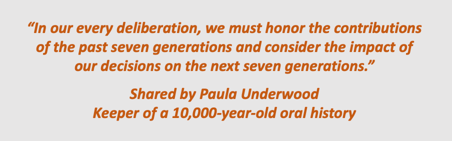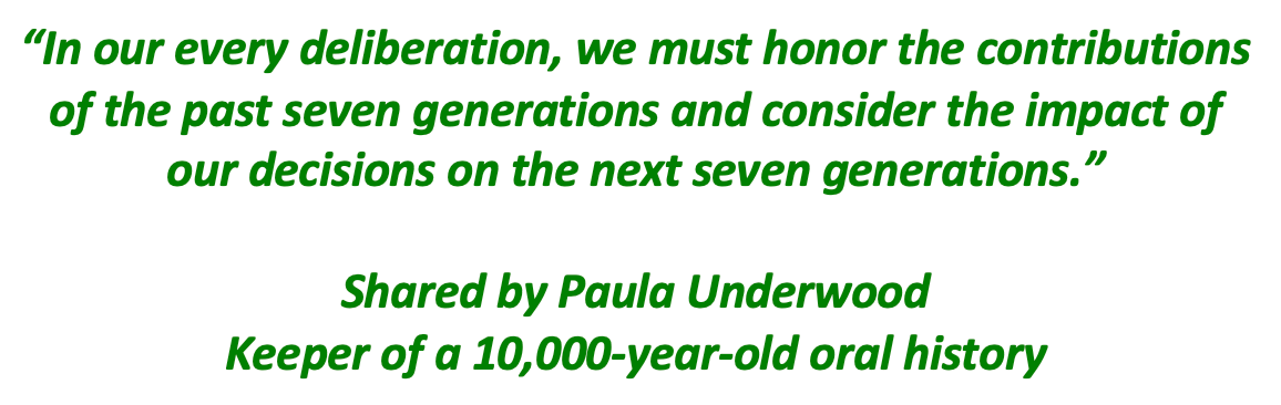 What might be possible, that's not possible now, if we adopt this long view? If we begin making decisions worthy of our ancestors' sacrifices. If we design systems to protect the health of future generations.
